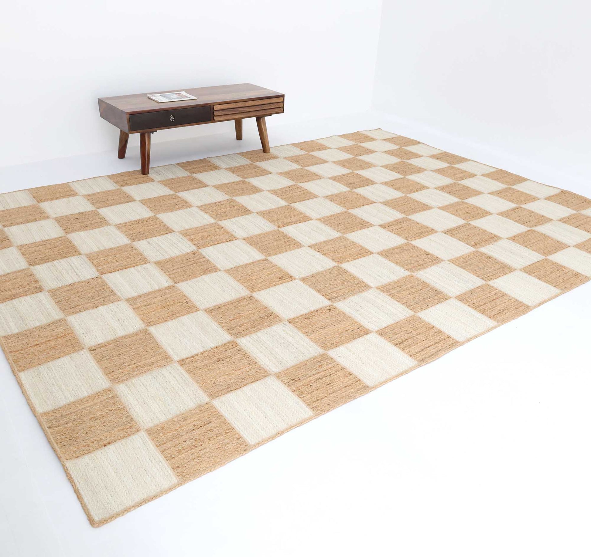 A fresh check pattern brings a clean and grounded feel to your space. This rectangle rug features a natural beige and off white checkerboard design that adds subtle contrast without overpowering the room. Made from pure jute, it has a firm texture and an earthy look that works well with wood furniture and neutral interiors. The braided construction gives it strength and everyday durability while keeping the surface comfortable underfoot. Its simple pattern makes it easy to style in modern, rustic, or minimal homes. If you are looking for a jute area rug with character and texture, this braided jute rug is a practical choice that also works beautifully as a checkered rug.