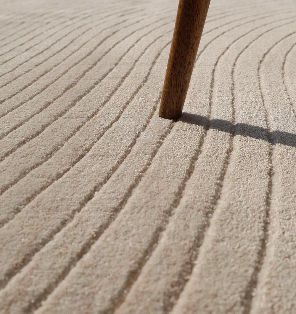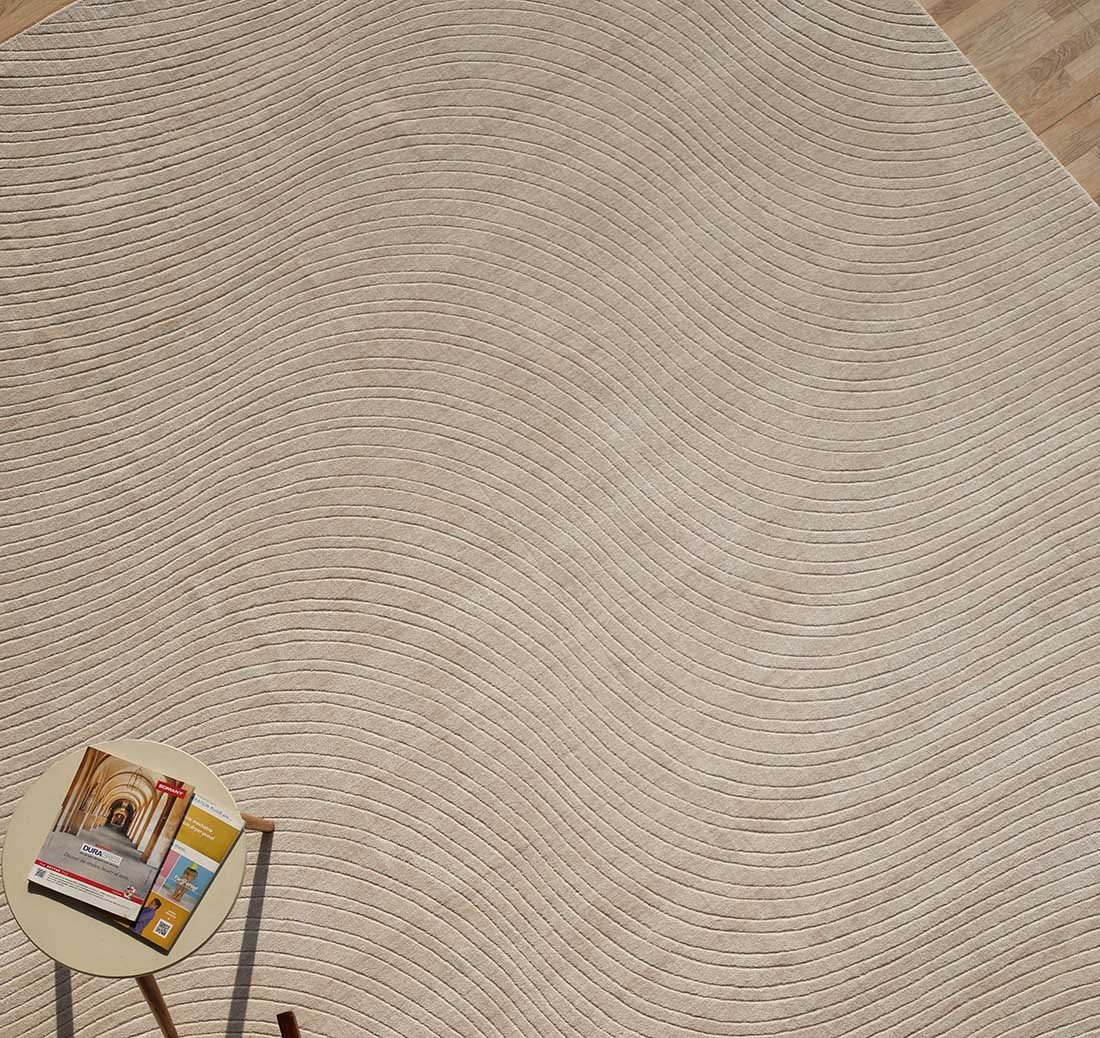 Soft curved lines ripple across this rectangular rug, giving it a calm, modern look with added texture. The color reads as light beige with gentle ivory highlights, so it brightens the space and pairs easily with wood, cane, or black accents. Loom knotted for a smooth, even finish, the polyester and cotton blend feels comfortable underfoot and stays practical for daily use. Place it as a beige textured rug to add depth without busy pattern, or use it as a modern neutral rug under a sofa to keep the room feeling open. The flowing design also makes it a great curved line rug for spaces that need softness and movement.