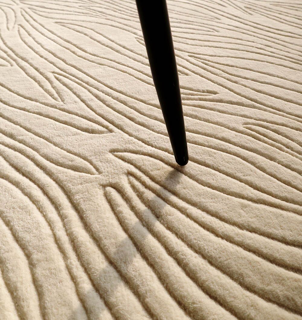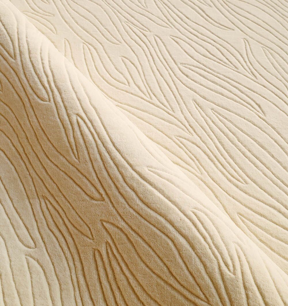 This rectangular rug brings a clean base with subtle movement, thanks to fine carved strokes across the surface. The color is warm cream with soft shadowing in the texture, so it keeps the room bright while adding quiet depth. Handtufted for a smooth, cushioned feel, the wool and cotton blend is comfortable underfoot and easy to style with both light and dark furniture. Use it as a cream wool rug to calm a busy space, or choose it as a hand tufted rug when you want a soft, everyday foundation. The understated finish also makes it a strong minimalist neutral rug for modern rooms.