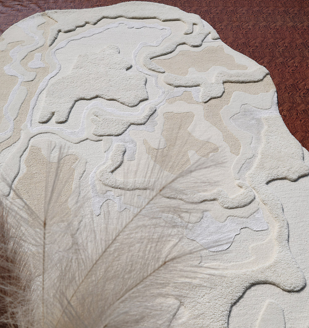Layered shapes and soft carving give this rug a sculpted, map-like look. The rectangular form with irregular pattern flows in warm beige, sand, cream, and light taupe tones, creating depth through raised and flat sections. Crafted as a handtufted rug, it blends wool, viscose, and cotton for a balanced feel that is soft yet structured. The abstract layout works well in open spaces, adding movement without strong contrast. As a modern abstract rug, it pairs easily with neutral furniture and wood finishes. This beige area rug offers texture and warmth while keeping the room light and cohesive.