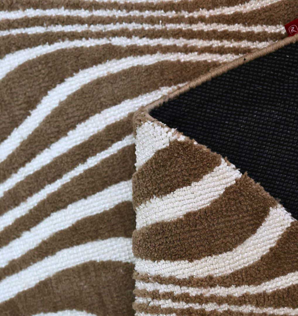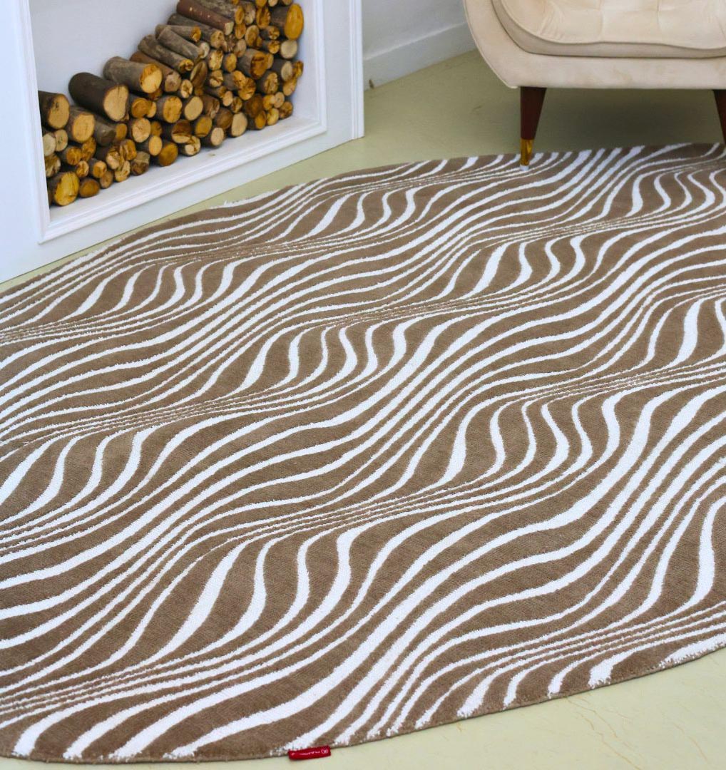 Dynamic waves in mocha and white ripple across this modern abstract rug, creating a fluid, eye-catching energy for your floor. The organic, undulating lines offer a high-contrast aesthetic that instantly updates any contemporary or minimalist space. As one of our durable machine-made rugs, it features a consistent, resilient pile designed to handle the movement of a busy home. A high-quality blend of 80% polyester and 20% cotton ensure a soft, comfortable feel underfoot while maintaining excellent structural shape. This oval area rug breaks away from traditional rectangular boundaries, making it an ideal choice for anchoring smaller furniture groupings or adding soft curves to architectural rooms. Its unique silhouette and rhythmic pattern combine the best of artistic expression with practical, long-lasting construction.
