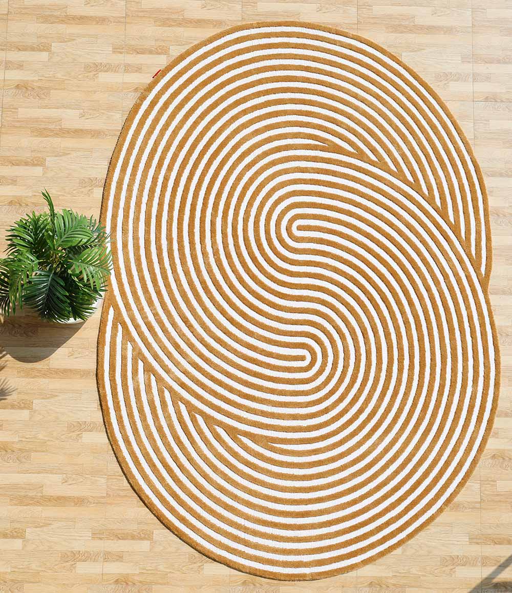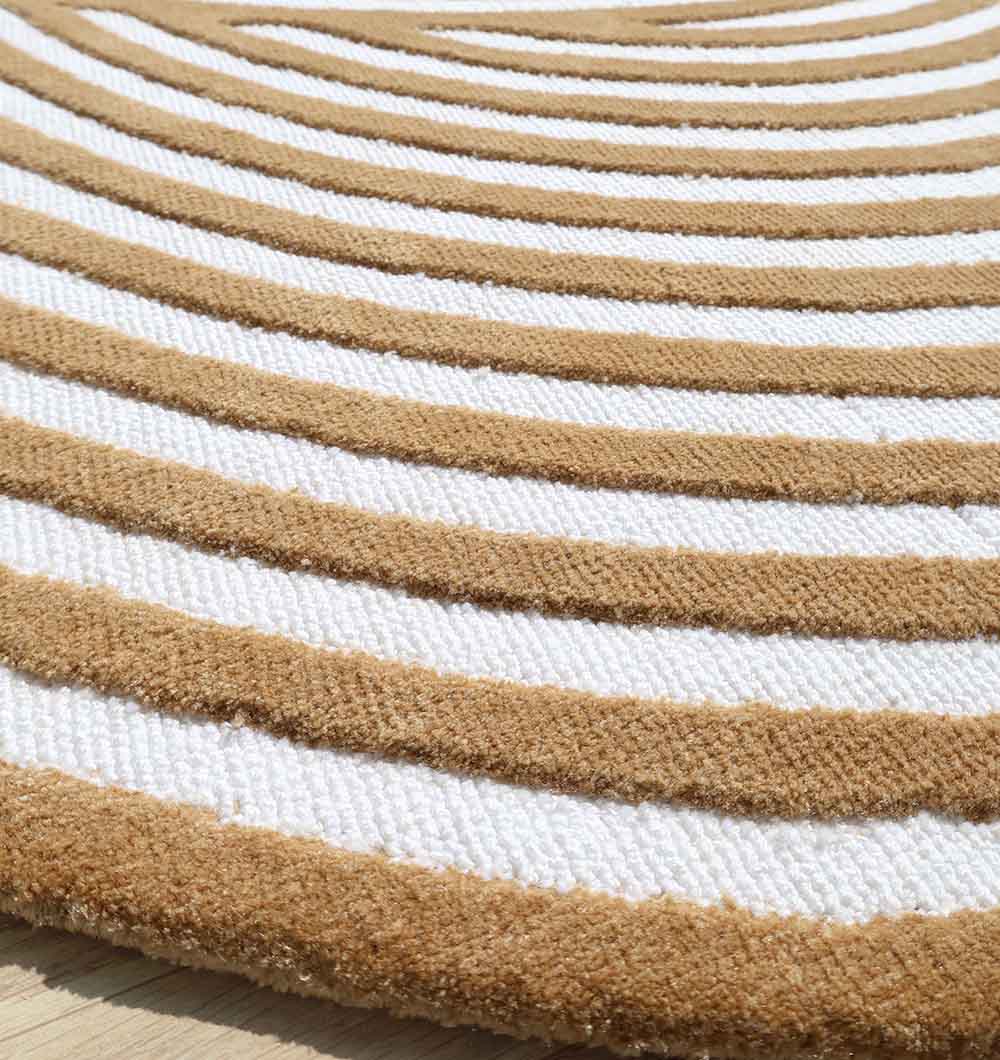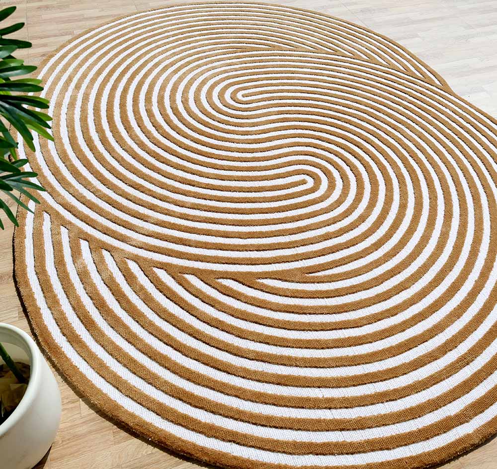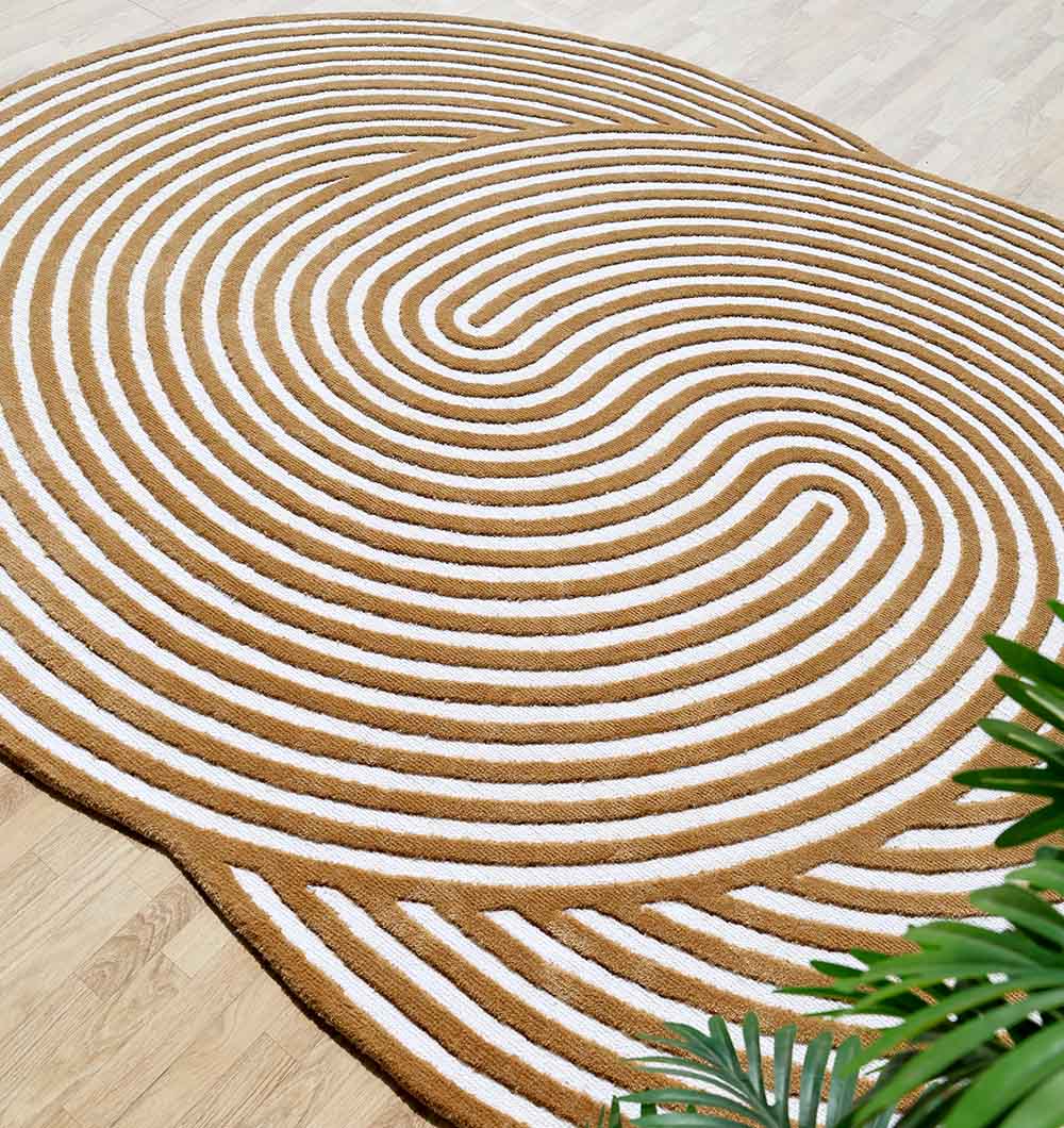 Bring warm, modern style to your space with this tan and cream swirl design. The flowing lines create a bold, maze-like look that pulls the eye inward and adds movement without feeling busy. The soft contrast makes it easy to pair with wood tones, neutral sofas, and natural decor, while the organic outline breaks up straight edges in a room. This irregular rug works beautifully as a statement piece, and the smooth surface is easy to style under a coffee table or beside the bed. As a machine made rug with a clean, crisp pattern, it’s a great pick for everyday use, and the Novara rug look adds a fresh, graphic touch.