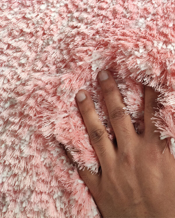 A warm dusty pink tone and plush finish make this rug an easy way to soften a room fast. The shaggy surface feels cozy underfoot, while the polyester, micron, and cotton blend helps it stay practical for daily use. This pink shaggy rug adds gentle color without a loud pattern, and the simple look pairs well with white, beige, or light wood furniture. Use it as a soft bedroom rug beside the bed for a comfortable first step, or place this plush area rug under a coffee table to create a relaxed seating zone.