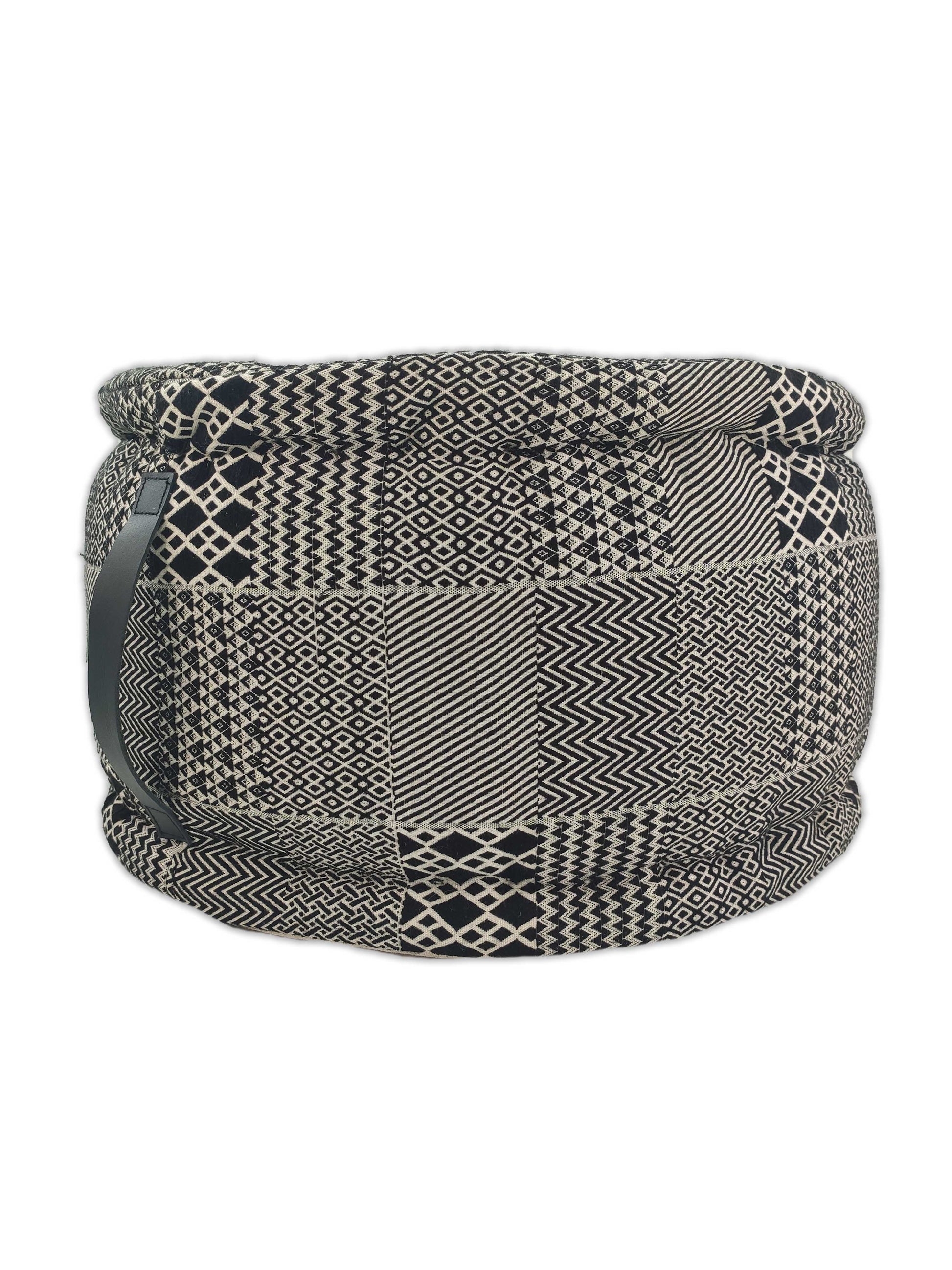 This stylish and practical polyester Pedestal Pouf With Leather Handle is crafted with quality materials. Its genuine leather handle is filled with Thermocol Beans. Its classic and durable leather Pouf can be a comfortable seat or footrest. Enhance your home decor with this timeless piece today.