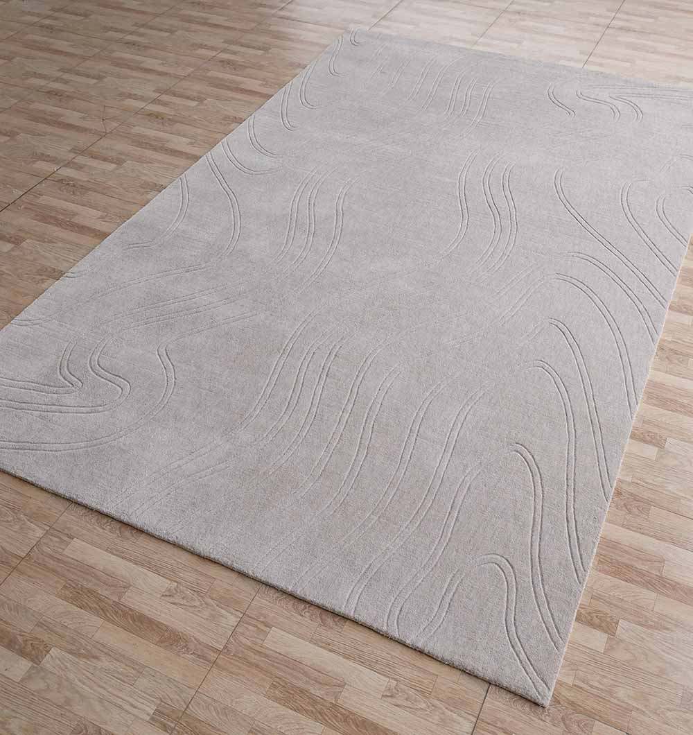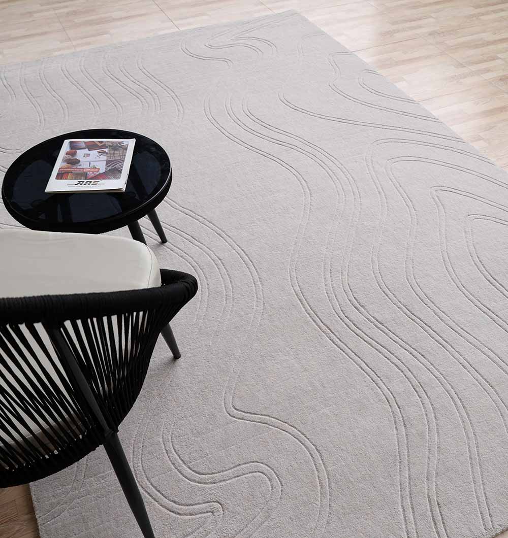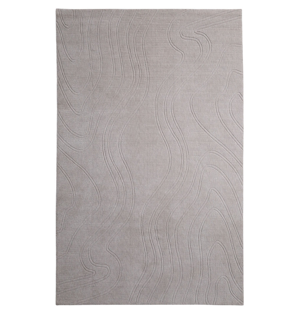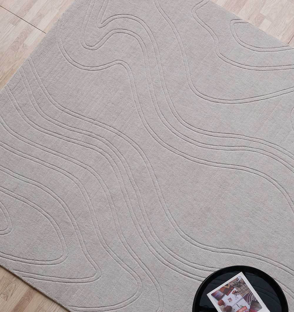 Soft and calm, this grey area rug features flowing, tone-on-tone lines that add movement without feeling busy. The low, sleek surface and subtle carving give it a refined look that works with modern, minimal, and cozy spaces. Made as a loom knotted rug with polyester and cotton, it’s easy to style and great for everyday rooms. Use it to ground neutral furniture, highlight clean shapes, or balance warm wood tones. If you want a modern textured rug that feels simple yet detailed up close, this one is an easy pick.