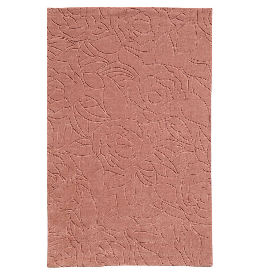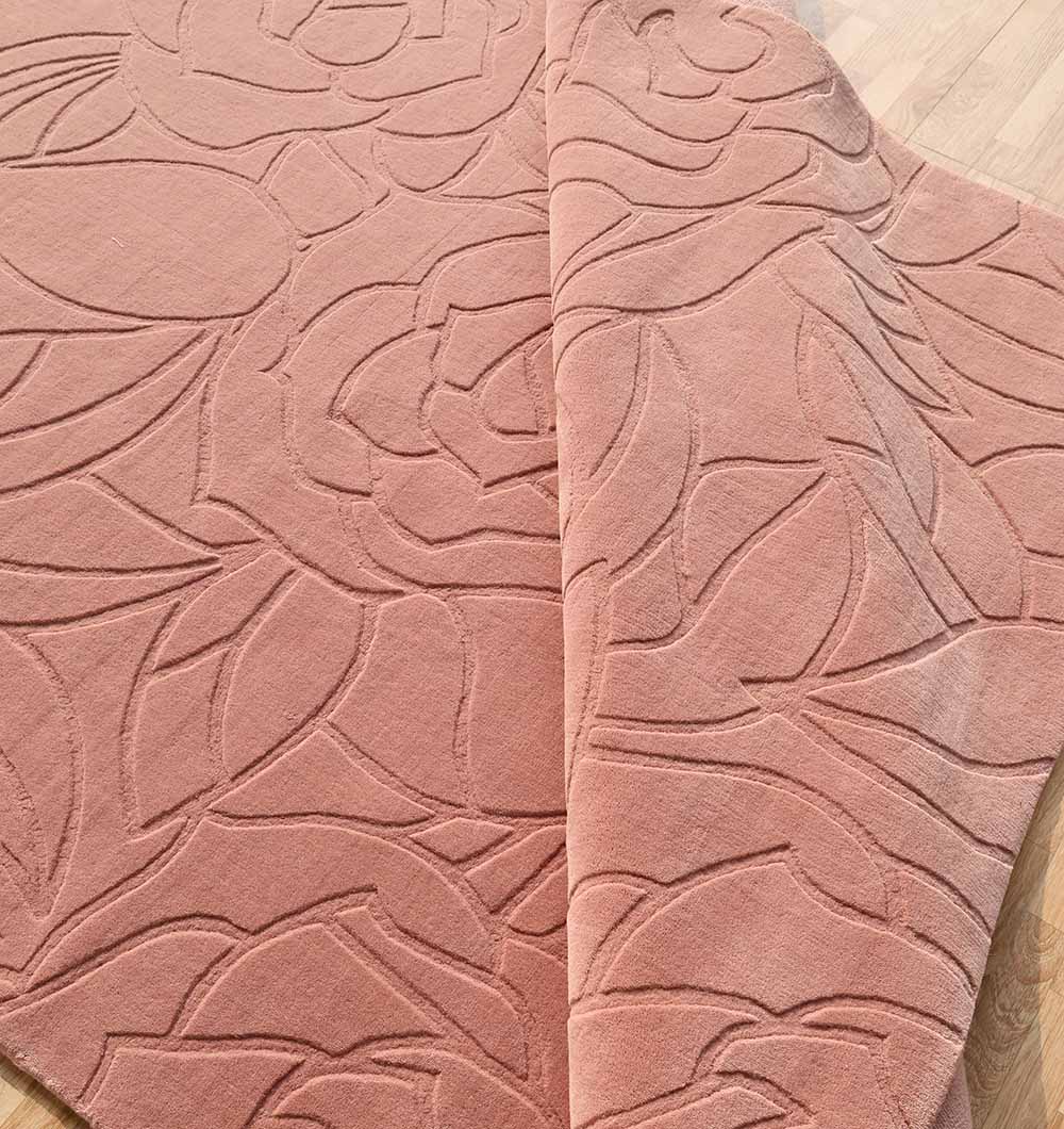 Soft blush tones and an all-over carved floral design give this rectangular rug a warm, elegant presence. The raised rose and leaf pattern adds depth through subtle texture rather than color contrast, keeping the look refined and easy to style. Made as a loom knotted rug from wool and cotton, it offers a dense, supportive feel that works well for daily use. The monochrome finish allows it to blend with light wood, neutral fabrics, or metallic accents without overpowering the space. Choose this floral area rug to introduce pattern in a calm way, or style it as a pink wool rug to bring gentle color into modern or classic interiors.