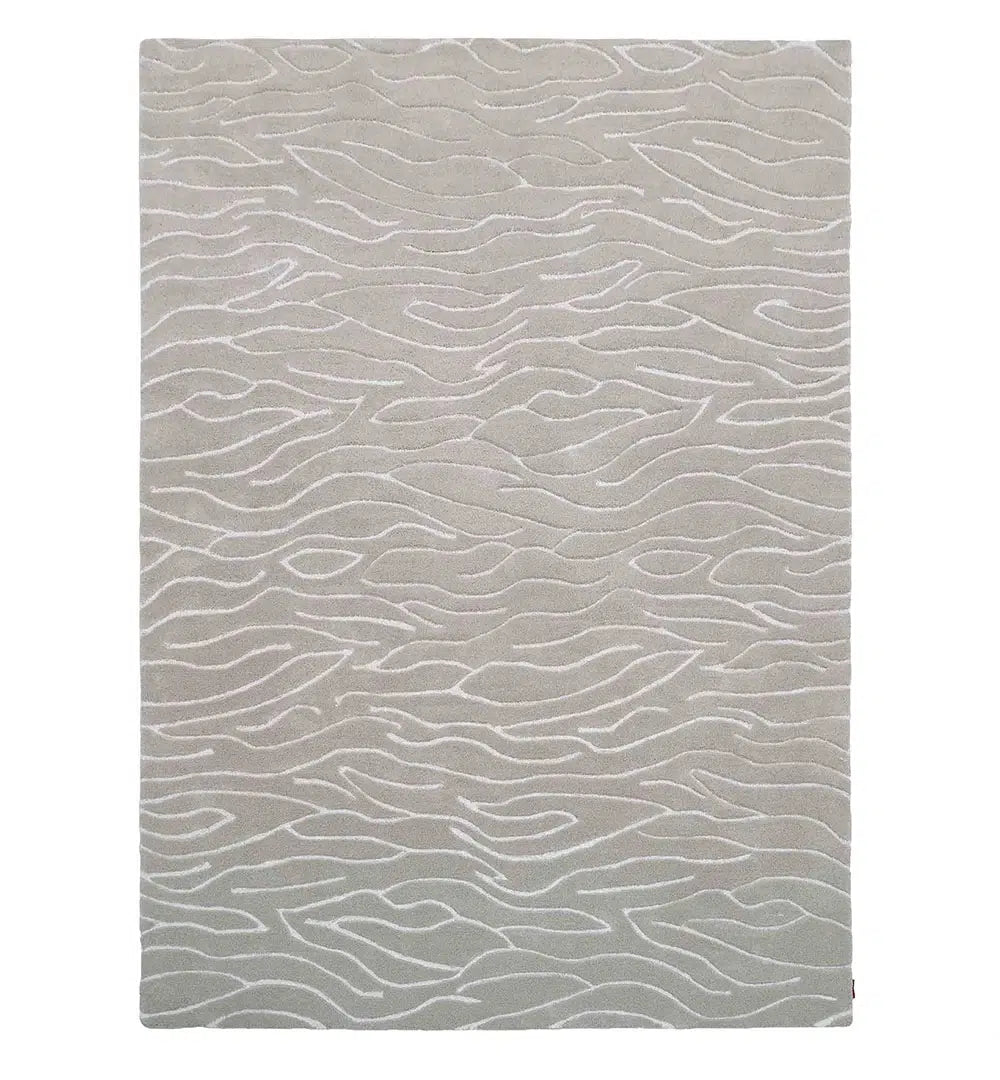 Layered, flowing lines give this rectangular rug a calm, water-like texture that works with many décor styles. The base is cool light grey with soft ivory outlining, creating gentle contrast that shows up without feeling busy. Handtufted for a comfortable pile, the polyester and cotton blend feels smooth underfoot and stays practical for everyday use. Use it as a grey abstract rug to add movement to a simple space, or keep things balanced with a textured neutral rug under a sofa or bed. The subtle pattern also makes it a clean hand tufted rug choice when you want texture more than color.