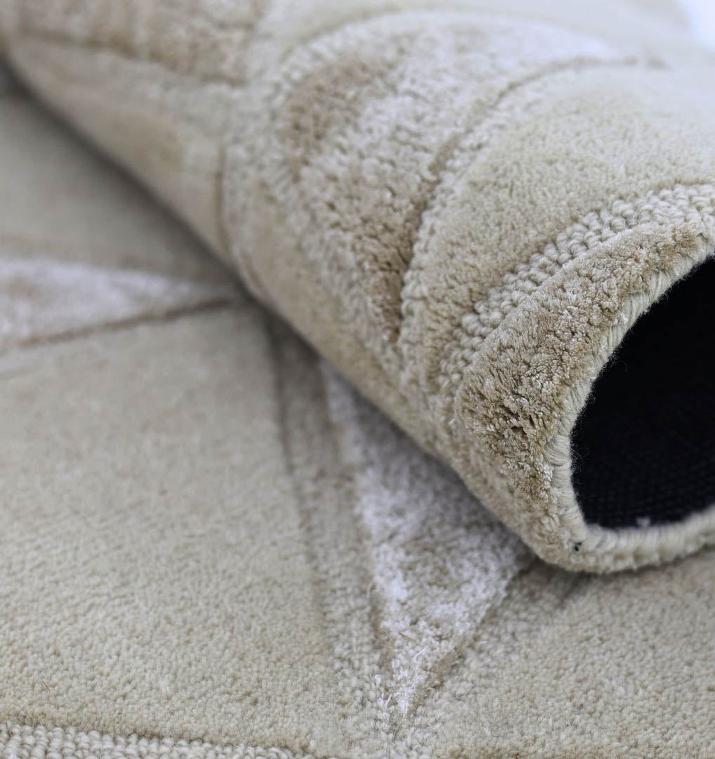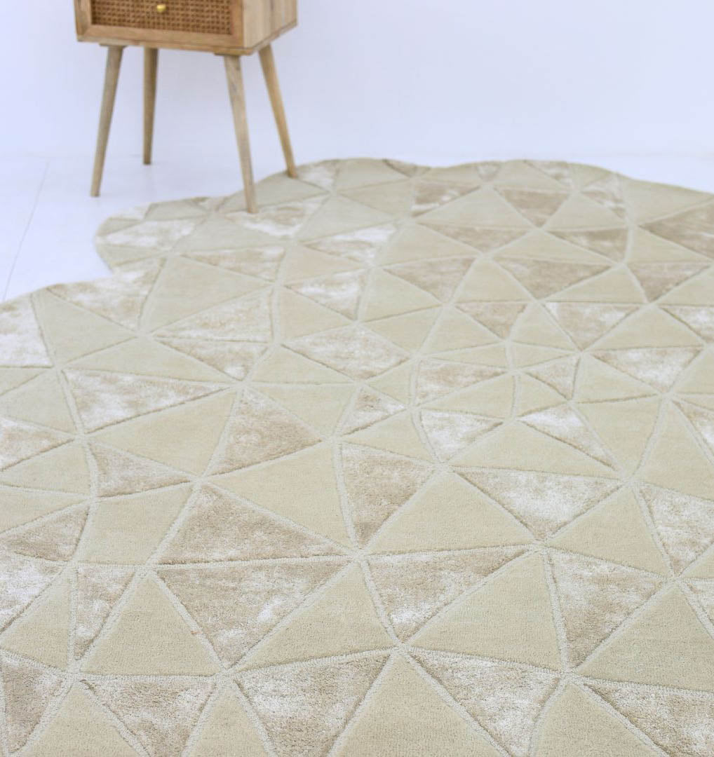 Bring a soft, warm look to your space with this cream and beige rug featuring a subtle triangle pattern and gentle sheen. The raised texture adds depth while keeping the style clean and calm, and the irregular outline gives it a modern, organic feel. Crafted as a hand tufted rug, it feels plush underfoot and layers beautifully with light woods, linen, and neutral decor. Use it as a geometric area rug to add quiet detail without overpowering the room, or style this wool tencel rug to create a cozy, polished base for everyday living.