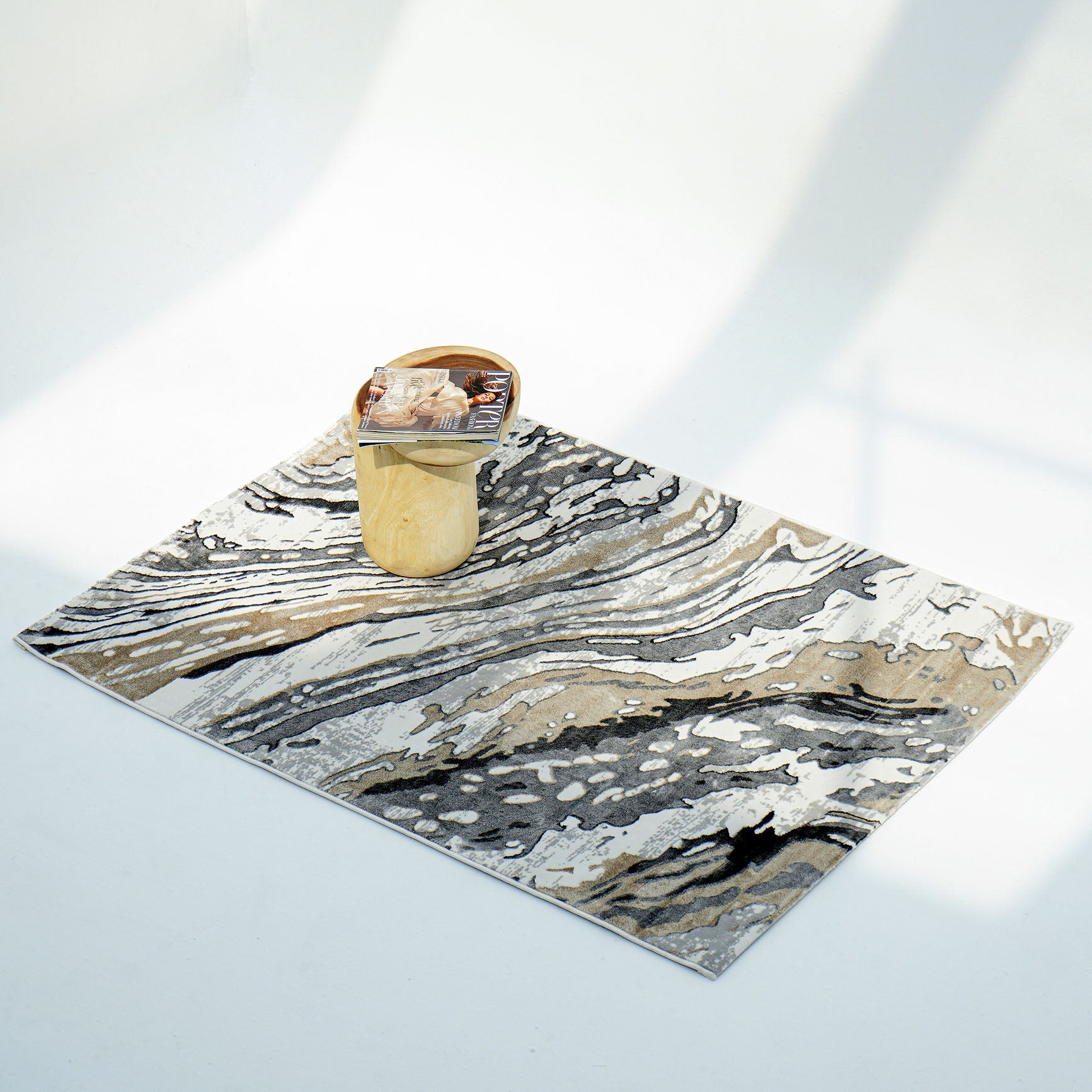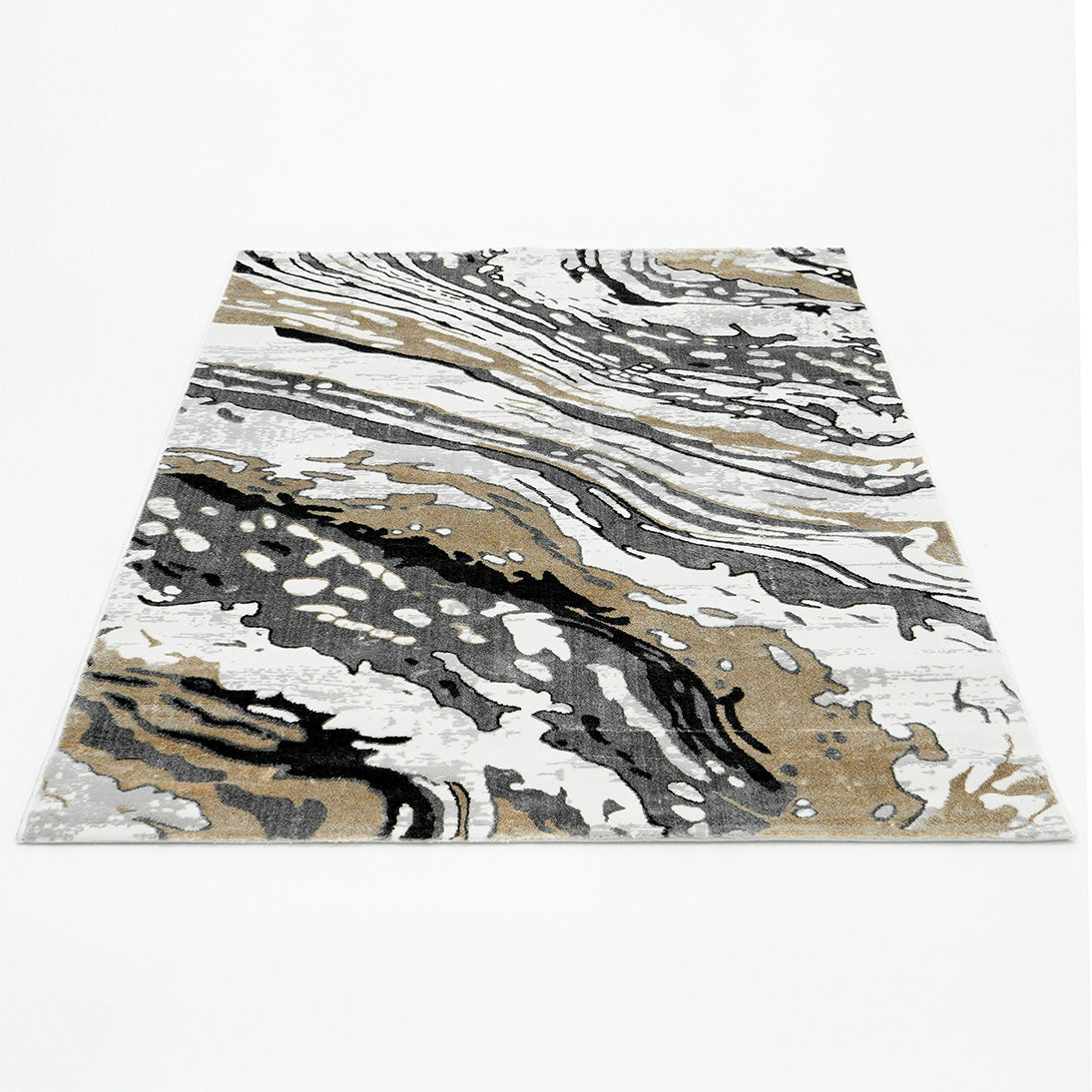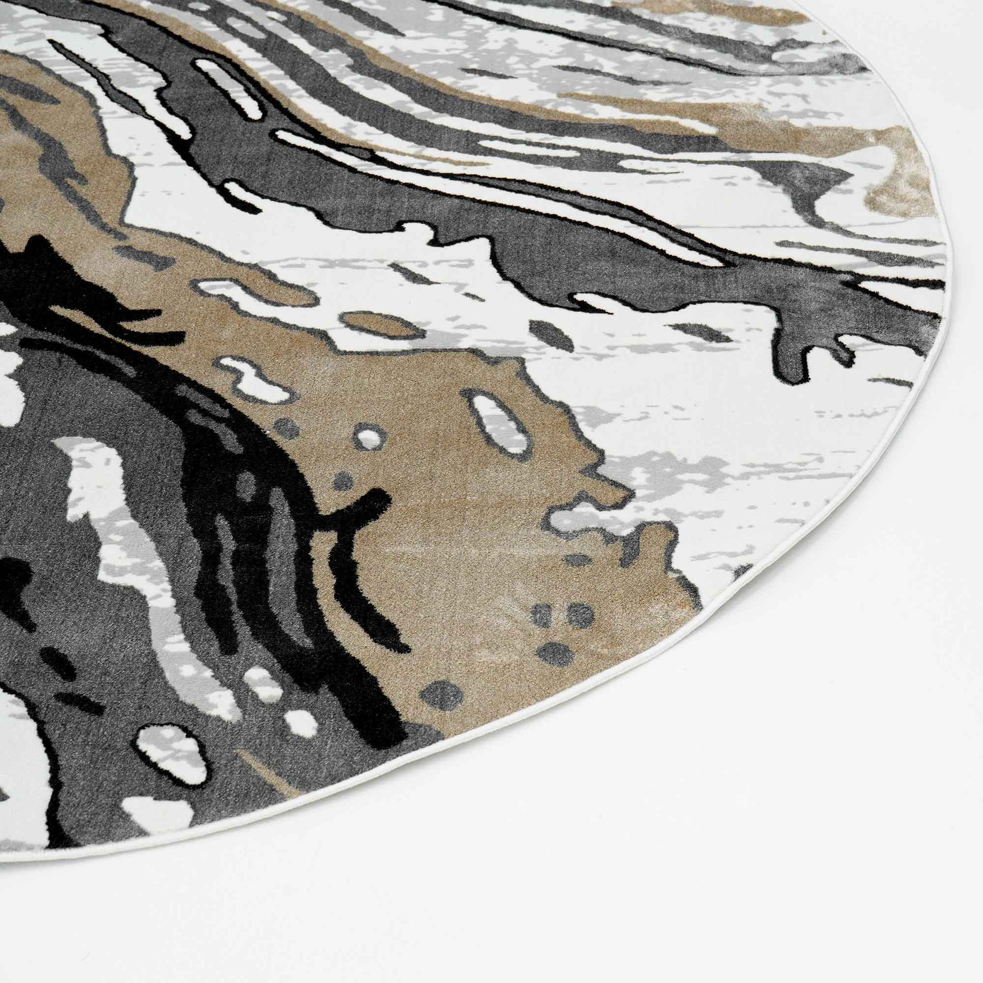 Bring a calm, modern look to your space with this gray, beige rug featuring a flowing stone-like design in ivory, charcoal, and warm sand tones. The soft sheen and smooth feel make it a stylish choice for everyday living, while the layered pattern adds depth without feeling busy. This marble pattern rug pairs easily with light woods, black accents, and neutral sofas. Use it as an abstract area rug to ground seating, warm up a bedroom, or add polish to an entryway. Available in rectangle or round to suit your layout.