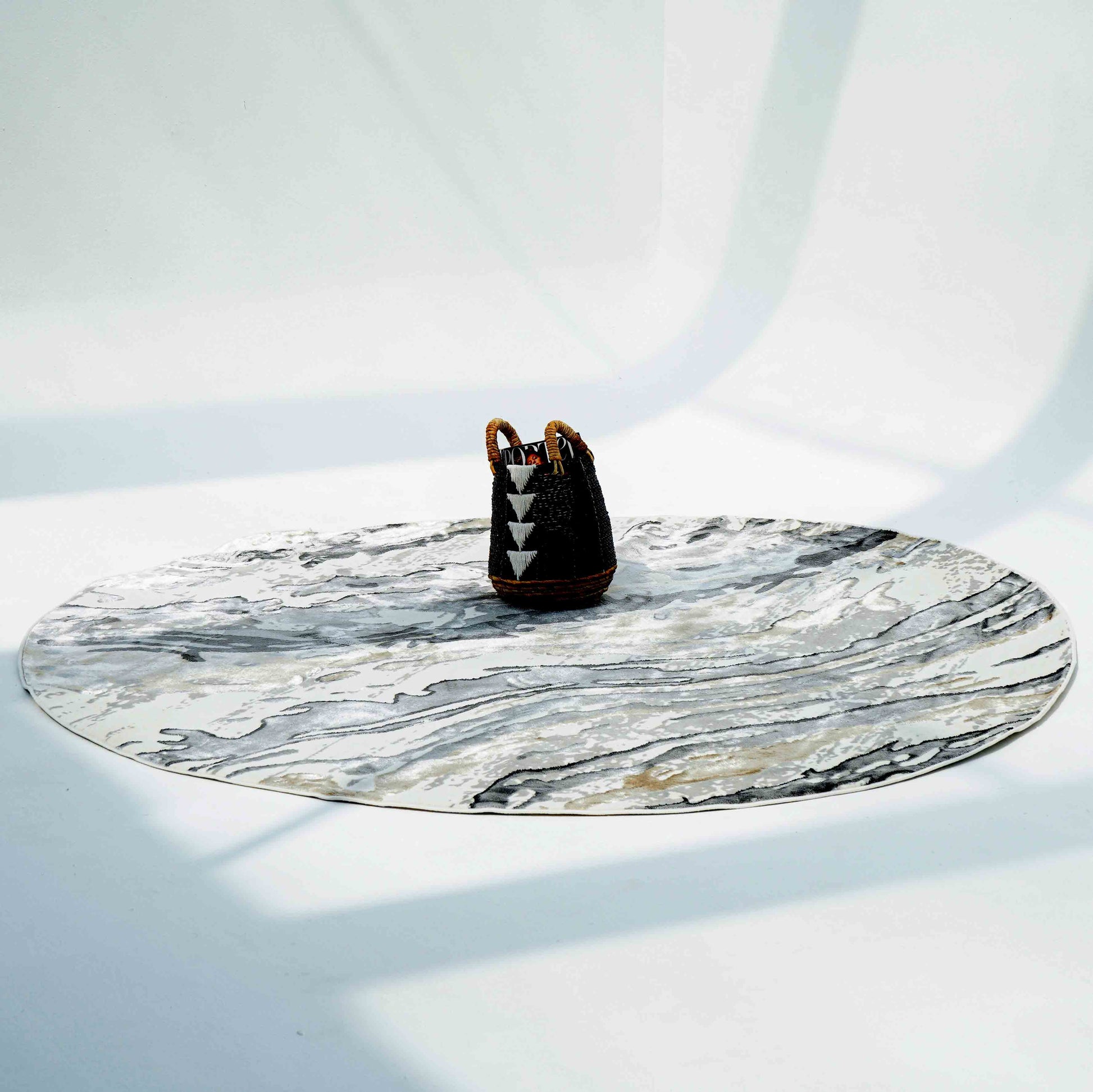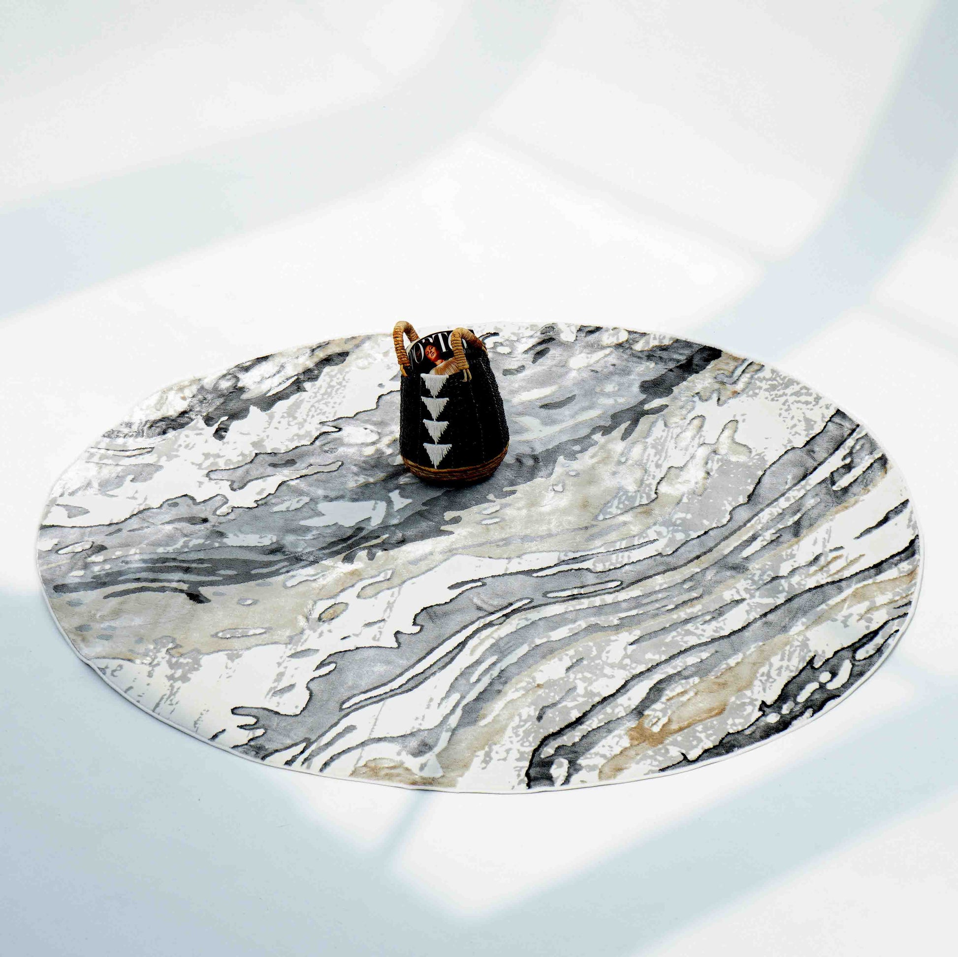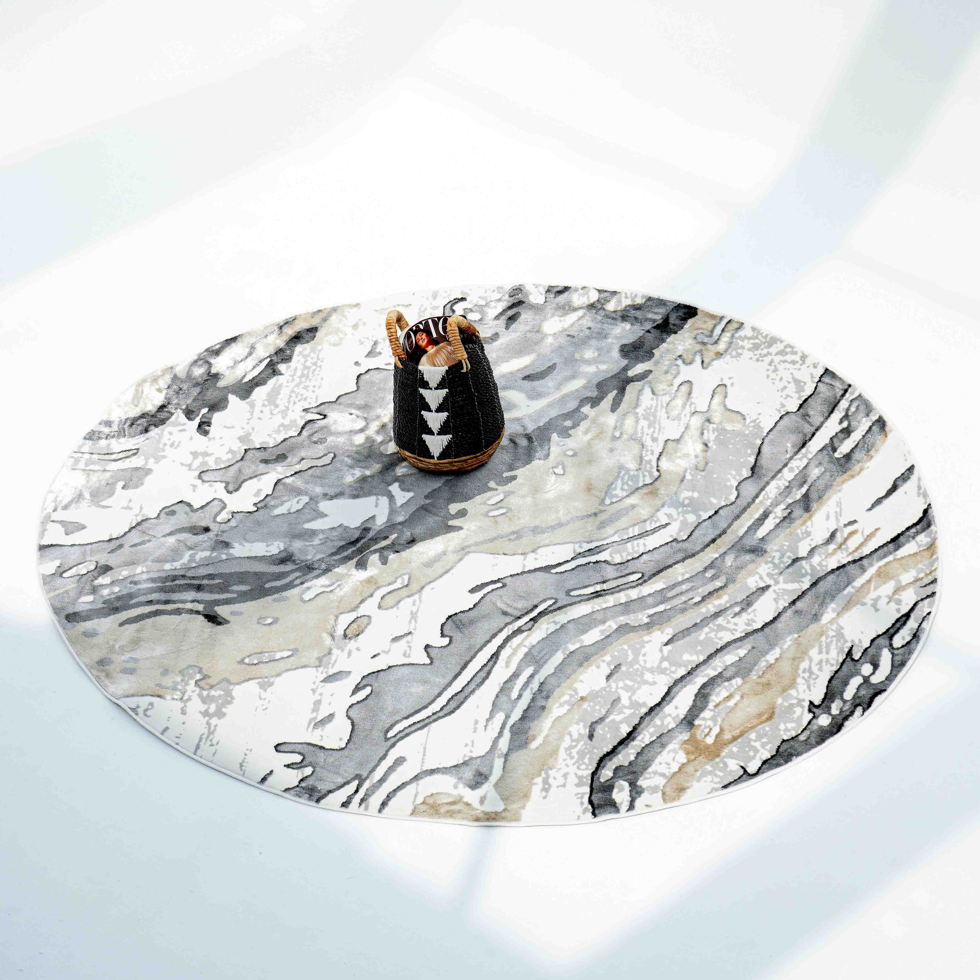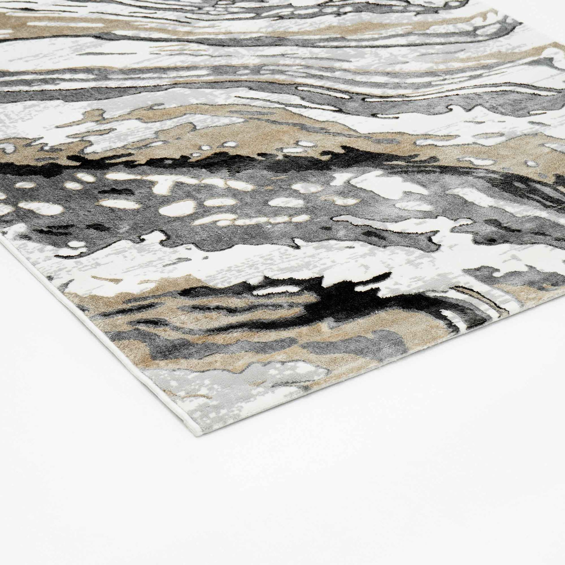 Bring a calm, modern look to your space with this gray, beige rug featuring a flowing stone-like design in ivory, charcoal, and warm sand tones. The soft sheen and smooth feel make it a stylish choice for everyday living, while the layered pattern adds depth without feeling busy. This marble pattern rug pairs easily with light woods, black accents, and neutral sofas. Use it as an abstract area rug to ground seating, warm up a bedroom, or add polish to an entryway. Available in rectangle or round to suit your layout.