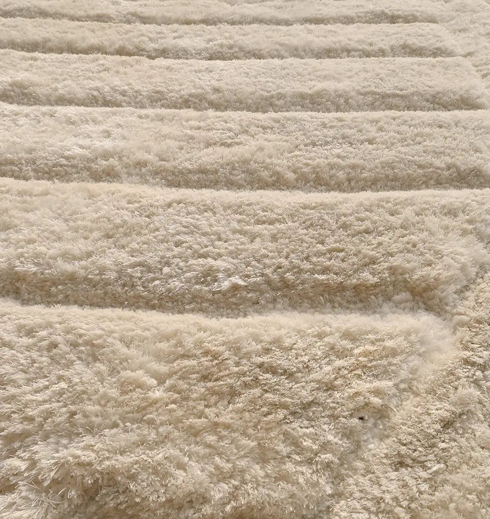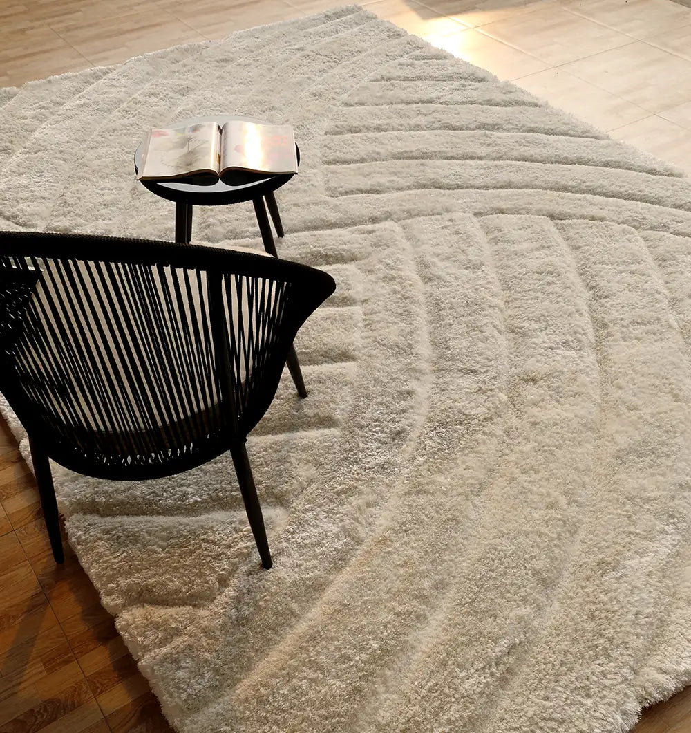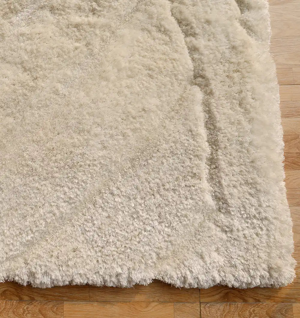 This rectangle shaggy rug in soft ivory adds a bright, clean base with a carved wave texture that brings depth without a busy print. The plush pile feels comfortable underfoot, and the polyester with cotton blend helps it stay practical for everyday living. The raised pattern catches light nicely, making it a simple way to soften wood or tile floors and calm down a modern space.
