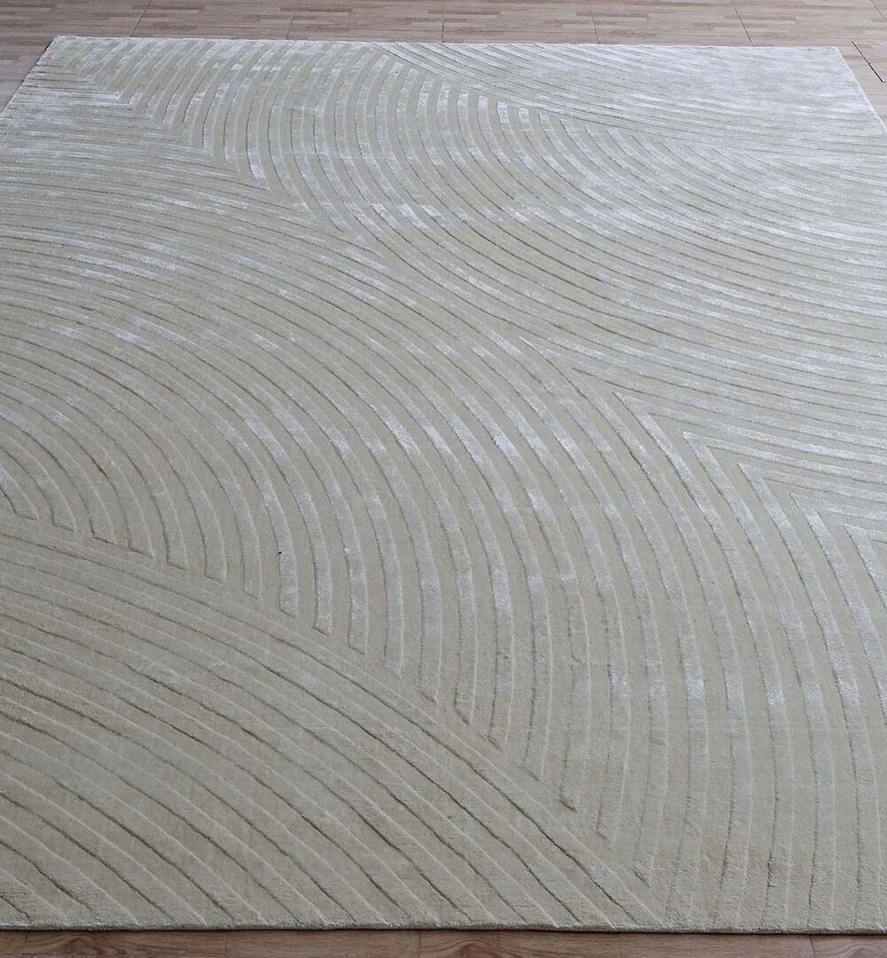 Bring calm texture into your space with this ivory rug, designed with soft curved lines that feel modern and soothing. The gentle carved pattern catches the light and adds depth without looking busy, making it easy to style with neutral sofas, light wood, and warm metals. This ivory area rug has a smooth, silky touch from tencel with cotton for a comfortable feel underfoot. Use it to brighten a room, soften echo, and create a clean, layered look. If you love quiet design, this textured rug offers a refined finish in a hand tufted rug style.