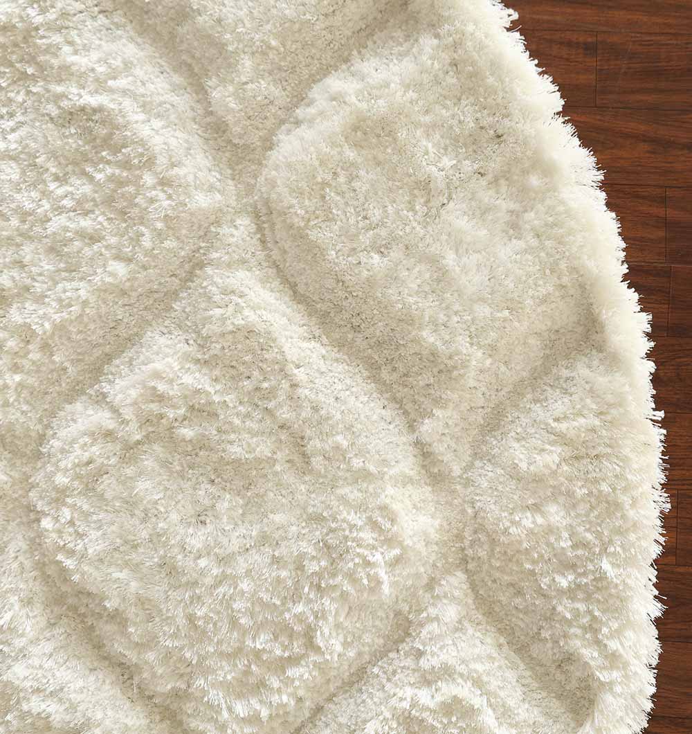 White Round Shaggy Rug with Carved Pattern - MP3D 13